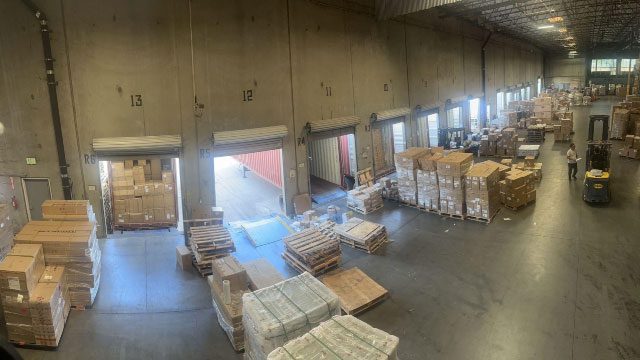 靠近洛杉磯港、長灘港,總占地面積8萬平方英尺,13個卸貨碼頭,日處理訂單5000+。